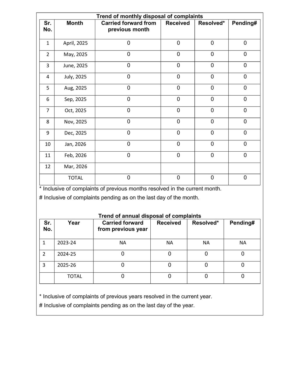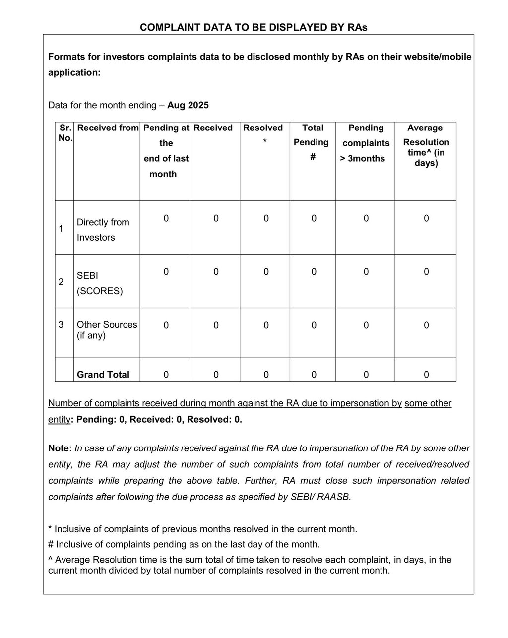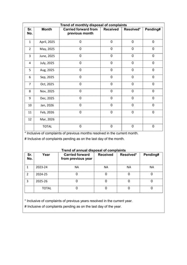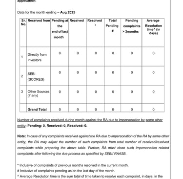 Displaying SEBI registered complaints as per latest SEBI guideline